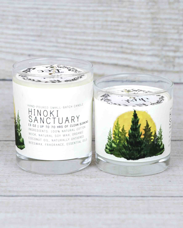 The Hinoki Sanctuary Just Bee candle offers a serene and harmonious scent designed to transport you to a place of peace and tranquility. The calming aroma of Hinoki Cypress sets the stage for a soothing, meditative experience, immersing you in the essence of nature. Aged cedar wood adds depth and richness to the fragrance, evoking a sense of timelessness and grounding, while deep gin botanicals intermingle with the woodsy scents, bringing a refreshing, herbaceous touch that elevates the overall fragrance. It is made with a 100% natural wax blend of soy, coconut, and beeswax and has a cotton wick.