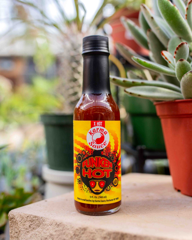 That’s Funken Hot! This sauce is flavor-forward firestorm, dropping a bold bassline of heat with a bright lime-and-garlic groove that dances across your palate. Funken Hot is crafted with a bold blend of fresh, all-natural ingredients: Hot brown pepper, organic sugar, apple cider vinegar, fresh lime juice, salt, garlic, spices.
