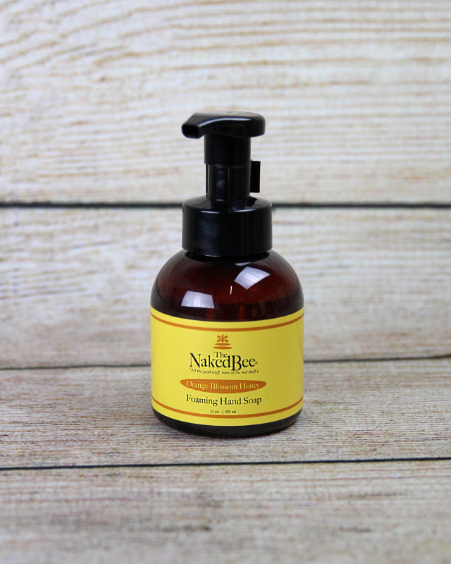 Naked Bee Foaming Hand Soap in Orange Blossom Honey scent forms a rich, hydrating lather while natural cleansers leave hands feeling fresh and clean.
