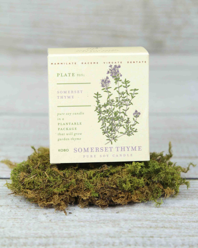 The richly herbaceous note of thyme is blended with the earthy undertones of sage. A subtle, crushed lemon leaf note is added to balance. The plantable package is infused with seeds that will grow garden thyme. A great gift for any time of the year!