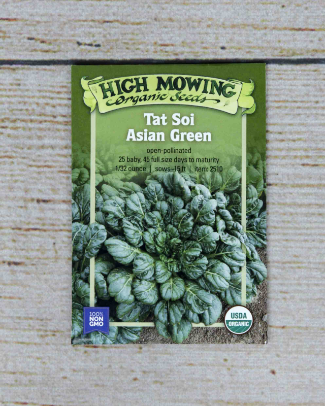 Fast growing spoon-shaped leaves are dark green and glossy with narrow white stems. Most popular as a baby leaf for salad and braising mixes, or bunched at full size. Mild flavor and tender texture. At full size, leaves form a rosette that sits close to the ground.