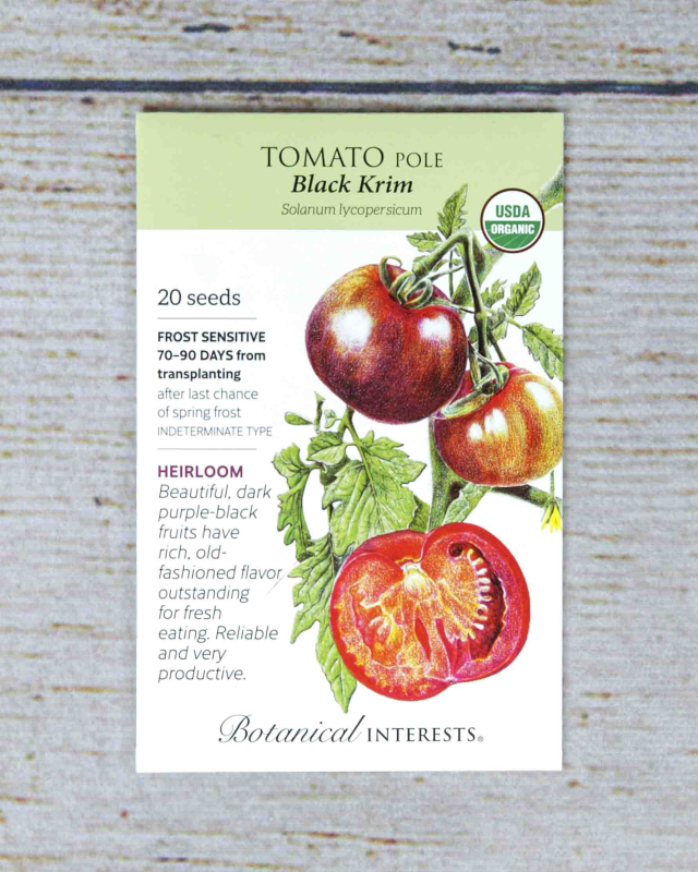 This Russian heirloom originated in Krymsk on the Black Sea in Russia. Baseball-sized fruits weigh 10–12 ounces and have reddish-brown flesh filled with a rich, slightly salty flavor. Fruit sets well in heat and is a reliable "black" tomato, producing even under adverse conditions from summer to fall. Provide support for plants that can reach 6' or more.