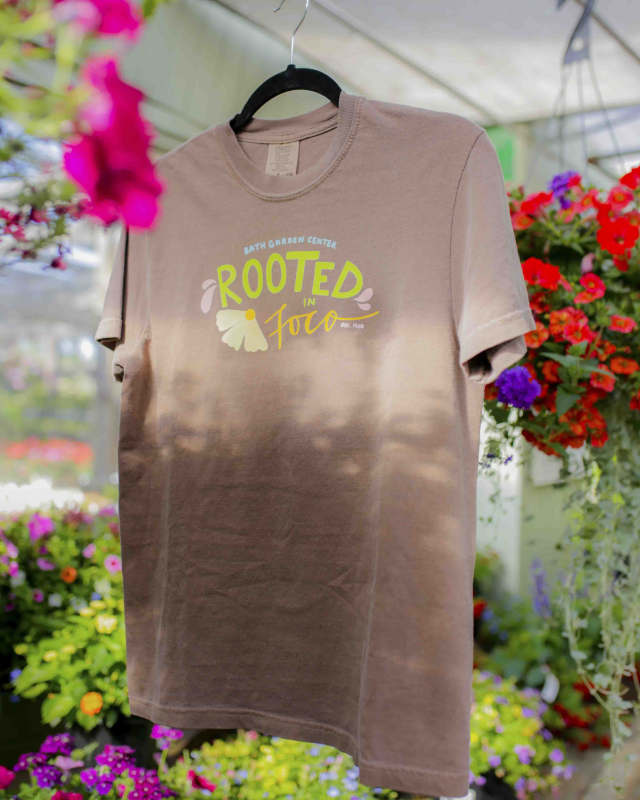Whether you're browsing the blooms at Bath Garden Center or exploring the trails around Horsetooth Reservoir, this "Rooted in Foco" tee is a comfortable and stylish way to carry a little piece of Fort Collins with you. Designed by Elcee Evershed and pressed in-house at Bath Garden Center.