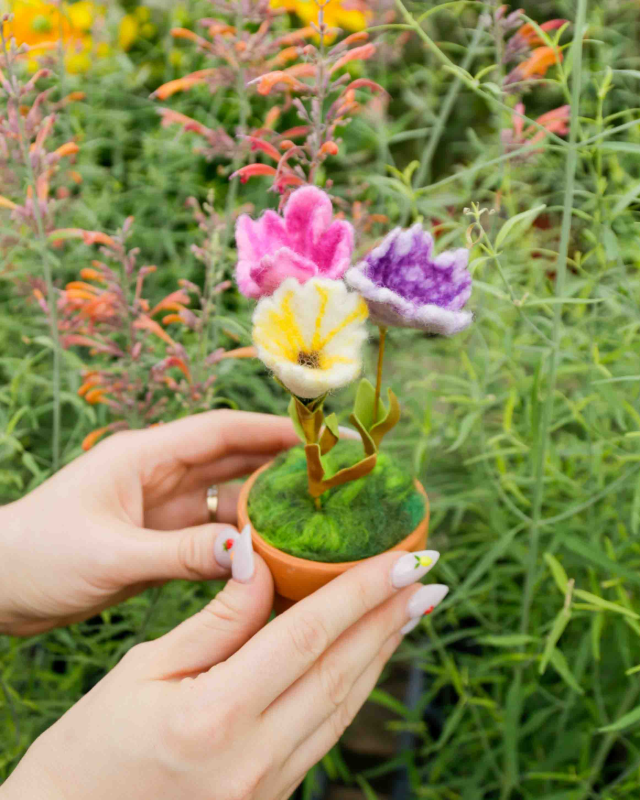 Learn the art of wet felting and create your own beautiful, one-of-a-kind felted flowers in this hands-on workshop! In this class, you'll discover the magical process of transforming soft wool fibers into sturdy, colorful felt. We'll cover everything you need to know, from selecting the right wool rovings to layering and shaping your petals. You'll learn various techniques to create different floral forms, textures, and realistic details, bringing your blossoms to life. You'll leave with several unique felted flowers, perfect for embellishing clothing, accessories, home decor, or simply as a stunning artistic display. Sign up today!