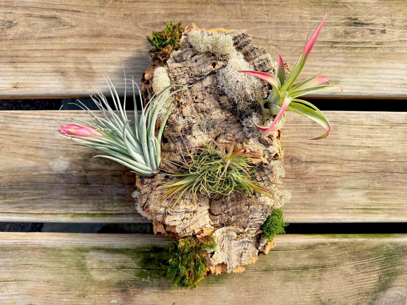 Ever been captivated by the ethereal beauty of air plants, those seemingly rootless wonders that dangle in mid-air? Now's your chance to bring them home and create a living masterpiece by learning to mount them on stylish cork bark! In this hands-on workshop, you'll dive into the fascinating world of Tillandsias (air plants) and discover the art of transforming them into living sculptures. Our passionate instructor will guide you through every step, from selecting the perfect air plants to crafting stunning arrangements. This class includes a 7x9 inch cork bark for mounting, 2 small tillandsia, and 1 medium tillandsia.