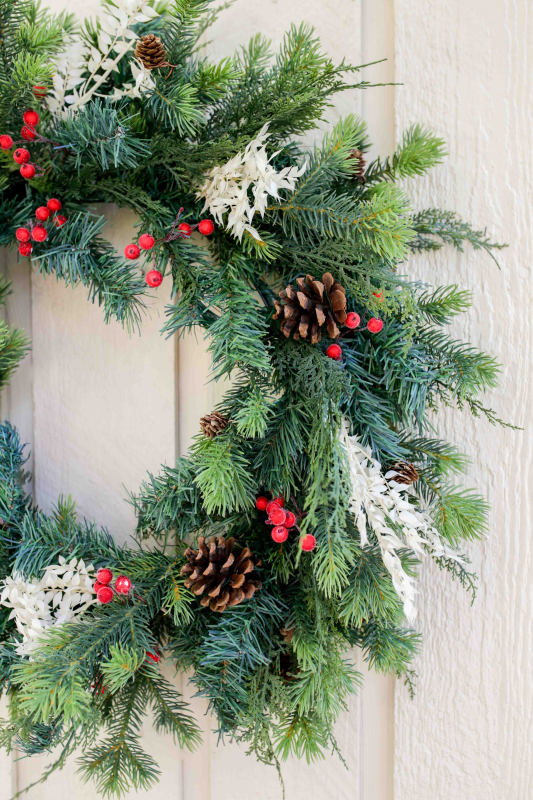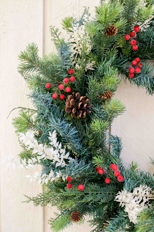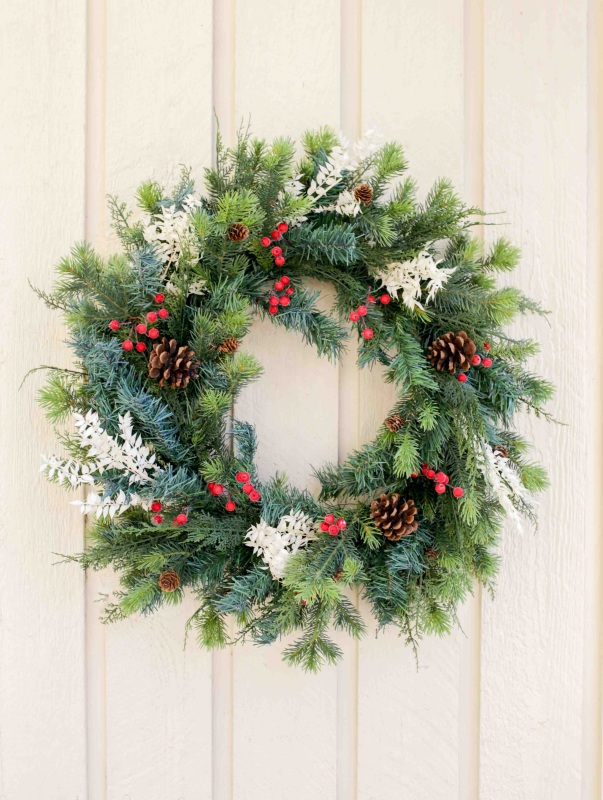 All materials needed to create your masterpiece will be provided, including fresh greenery, dried florals, berries, pinecones, and other decorative elements.