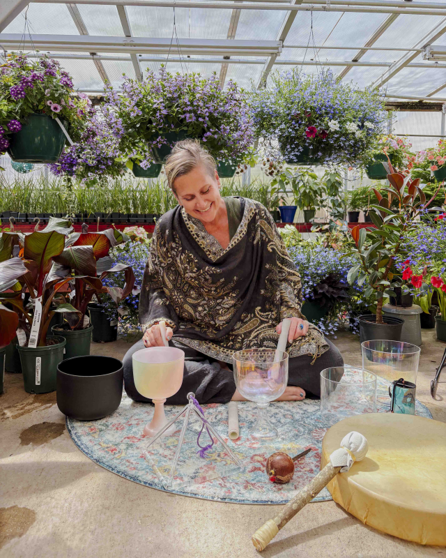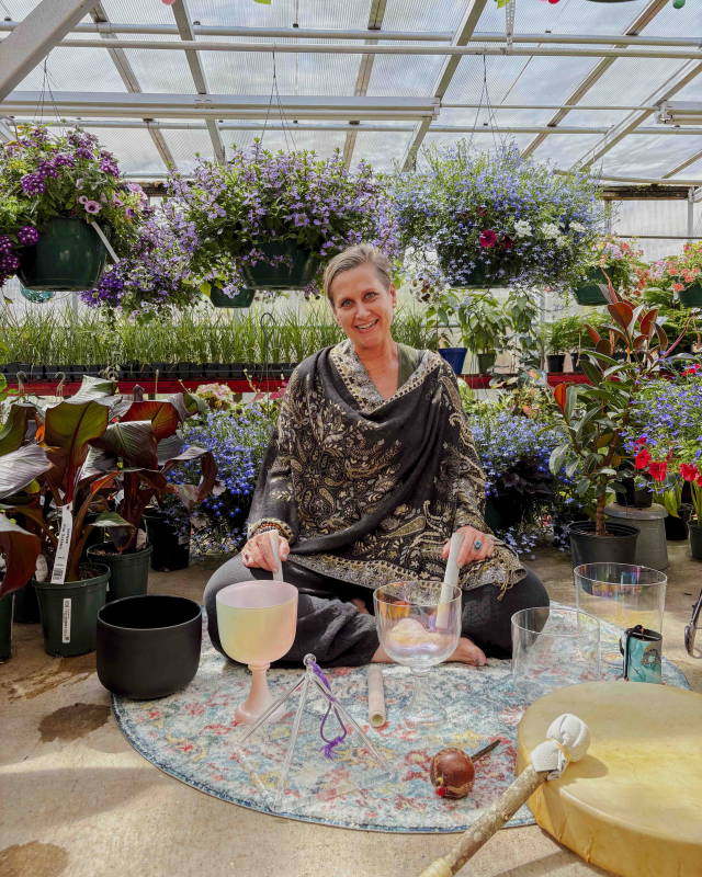 Step into a tranquil oasis for a unique 60-minute Greenhouse Meditation Sound Bath, perfectly aligned with the vibrant energy of the summer solstice. Imagine yourself immersed in the lush beauty and fragrant embrace of blooming flowers and verdant plants as you embark on a deeply relaxing journey.